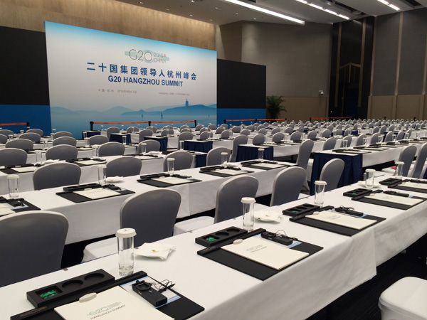 【概要描述】2016年9月4-5日,二十国集团(G20)领导人第十一次峰会在杭州国际博览中心举行。金年会电子游戏app为上述会议的20余个会场提供了约7000席的会议讨论和同声传译等会议系统设备。